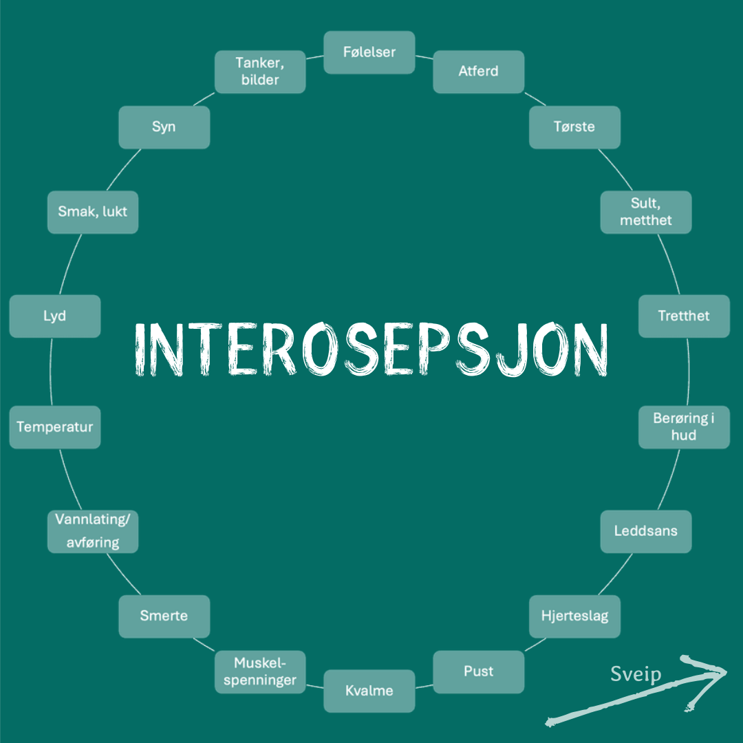 Interosepsjon handler om å sanse og tolke signaler fra ditt indre. Det betyr å legge merke til signaler fra kroppen, men også fra hodet, som tanker, bilder, minner og følelser.